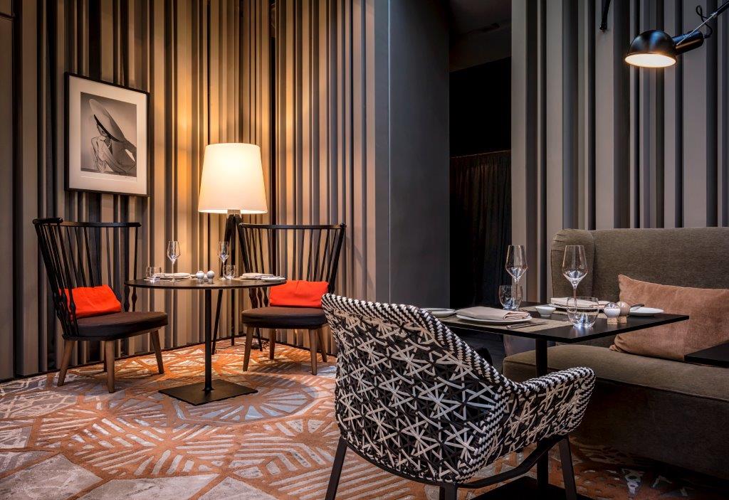 Das Stue (dänisch für „Wohnzimmer“), besticht mit seinem repräsentativen Gebäude und der exponierten Lage im Herzen Berlins – im Botschaftsviertel am Tiergarten, mitten im Grünen und doch nicht weit vom Potsdamer Platz, der Berliner Philharmonie und dem Kurfürstendamm entfernt. Die ehemalige Königlich Dänische Gesandtschaft mit ihrer geschwungenen Fassade aus den 1930er Jahren im klassizistischen Stil entstand nach den Plänen des Architekten Johann Emil Schaudt, der auch das berühmte Berliner Edelkaufhaus KaDeWe entwarf. Der Neubau an der Rückseite des Gebäudes vervollständigt den spannungsvollen Bogen zwischen Neu und Alt und bildet mit seiner speziellen Fotobetonoberfläche mit historischem Blütenmuster einen eleganten Gegenpol zur rauen Natursteinfassade des geschichtsträchtigen Haupthauses. Nach seiner feinfühligen Renovierung versprüht Das Stue ein ruhiges Ambiente mit offenen Räumen und zeitgenössischem Design. Die bekannte spanische Designerin Patricia Urquiola verlieh den öffentlichen Bereichen Lobby, Bar und Restaurant ihre einzigartige Handschrift und ging dabei voller Respekt gegenüber der beeindruckenden Architektur vor. So erhielt sie den Charakter der herrschaftlichen Treppenaufgänge am Eingang und schuf als Gegengewicht eine Bibliothek auf drei Ebenen. Liebhaber der Fotografie wissen insbesondere die Sammlung von Werken aus der glamourösen Welt der Mode mit Schwerpunkt auf den der 50er und 60er Jahre zu schätzen. Der Tageslicht-Spa, der mit den ersten Sonnenstrahlen des Tages öffnet, bietet drei Behandlungsräume, einen Indoor Swimmingpool sowie eine Glassauna und einen Fitnessraum. Zusätzlich zu diesem Wellness Center stehen zwei intime Bibliotheks-Lounges als private und elegante Rückzugsorte zur Verfügung. Das Restaurant Cinco, das an die einsehbare Showküche angeschlossen ist, und wo die Gäste unter einer Lichtskulptur aus Kupfertöpfen Platz nehmen, soll laut Patricia Urquiloa „das Gefühl vermitteln, in der mondänsten Speisekammer Berlins zu sitzen“. Im Kontrast dazu wurde der All-Day-Dining-Bereich mit großen Oberlichtern, die den Raum mit hellem Tageslicht durchfluten, erdigen Farben und vom Trubel abschirmenden Stelen gestaltet. Das Restaurant leitet Paco Pérez, Culinary Director im Stue. Er wurde in seinen spanischen Restaurants mit insgesamt vier Michelin-Sternen ausgezeichnet. Der Katalane haucht der Küche im Stue ein mediterranes Flair ein – wobei die Gäste die Wahl zwischen zwei Restaurants haben- »The Casual« oder dem feinschmecker »Cinco«, welches schon innerhalb von einem Jahr nach der Eröffnung den ersten Michelin Stern erworben hat. Beim Interieur der 79 Zimmer und Suiten gehen Hochglanzoberflächen und satte Stoffe eine moderne aber dezente Verbindung ein. Parkettböden, hohe Decken und der Blick auf den angeschlossenen Tiergarten erinnern an die weitläufigen Räumlichkeiten großzügig angelegter Villen. Alle sind mit einem Schreibtisch, Regendusche, geräumigen Kleiderschrank mit separatem Schuhkabinett, interaktivem Full-HD-Entertainment System von Apple – inklusive Internetzugang oder 55" großen Flatscreen Fernsehern, kostenlosem W-LAN und LAN, elektronischem Safe inklusive Steckdose und Klimaanlage ausgestattet, einige verfügen über Terrassen und Balkone.