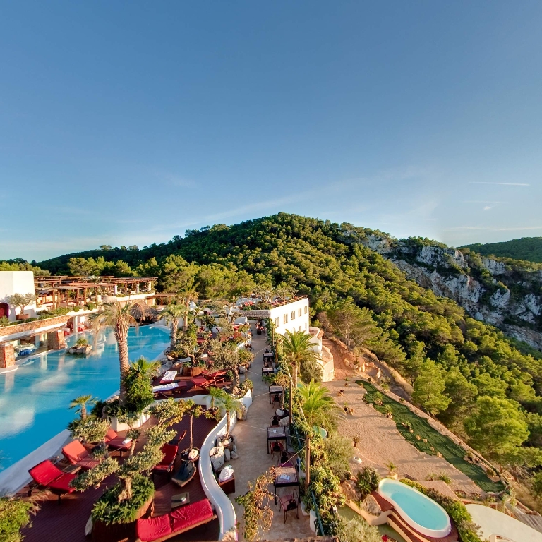 Hacienda Na Xamena befindet sich auf einem sieben Hektar großen Terrain in Ibiza und liegt 180 Meter über dem Meer auf einer Steilküste inmitten eines Naturschutzgebietes mit einer einzigartigen Flora und Fauna. Der Nord-Osten Ibizas ist eines der letzten intakten europäischen Naturschutzgebiete mit herrlichen unberührten Pinienwäldern, von dessen Duft man im Hacienda Na Xamena jeden Morgen sanft aufweckt wird. Diese einzigartige Kulisse mit smaragdgrünem Meer, wilden Felsen und unvergesslichen Sonnenuntergängen beschert magische Momente. Die Hacienda hat insgesamt 70 Zimmer und Suiten, die alle über einen Jacuzzi und einen atemberaubenden Blick auf das Mittelmeer (außer Einzelzimmer) verfügen. Die typische weiße ibizenkische Bauweise wurde behutsam in die Umgebung eingefügt und findet sich in Innenhöfen, Bögen, Galerien, Wasserläufen und den Terrassen wieder. Die wunderschöne Dekoration ist beeinflusst von arabischen und balinesischen Stilen. Das hoteleigene Spa La Posidonia bietet vielfältige verwöhnende Schönheits-Behandlungen, bei denen man wunderbar entspannen und den Alltagsstress hinter sich lassen kann.