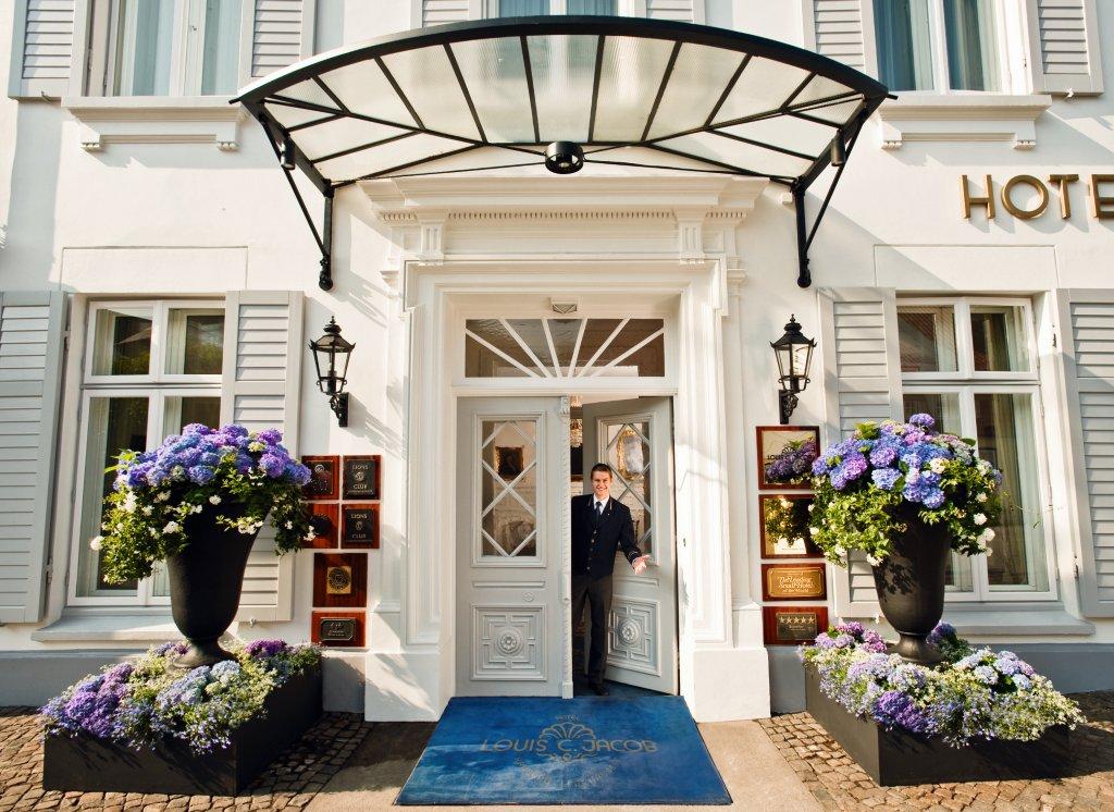 Zeitlose Eleganz und zurückhaltendes Design – Alle Zimmer und Suiten des Hotel Louis C. Jacob sind nach diesem Credo gestaltet. Dabei ist das charakteristische Qualitätsbewusstsein der Hotelierfamilie überall zu finden: Bäder in wertvollem Naturstein, Möbel von erfahrenen Handwerksmeistern und hochwertige Teppiche auf alten Eichendielen sind die Merkmale, die alle Gästezimmer gemein haben. Ihre vorherrschende Farbgebung – eine ästhetische Überraschung – ist grün, rot, blau oder gelb, je nach ihrer Ausrichtung. Der begehrte Höhepunkt ist das Liebermannzimmer, in dem der berühmte deutsche Impressionist einst gelebt hat, als er die berühmte Lindenterrasse malte, die eines der 500 Originalgemälde ist. Die Kunstausstellung zeigt eine der größten Privatsammlungen in Norddeutschland. Die höchsten Auszeichnungen der wichtigsten internationalen Hotel- und Restaurantführer sind die äußeren Zeichen des zutiefst beeindruckenden "Savoir cuire", das dem Restaurant "Jacobs" einen permanenten Platz unter den führenden Restaurants Deutschlands sichert (ein Michelin-Stern, 18 Punkte im Gault Millau). Die leichten, frischen Gerichte mit französischer Note, die von Chefkoch Thomas Martin kunstfertig voller Fantasie und Raffinesse zubereitet werden, und der kompetent zusammengestellte Weinkeller haben das Restaurant zu einem Anziehungspunkt für Genießer gemacht. Der herrliche Blick, den man vom "Jacobs Restaurant" durch seine hohen Glastüren über die Lindenterrasse zur Elbe hat, die liebevoll restaurierten Wandmalereien, die Stuckdecken und die schweren Kristallleuchter schaffen eine außergewöhnliche Atmosphäre, die jeden Besuch in "Jacobs Restaurant" zu einem Erlebnis macht, ebenso wie Mittag- oder Abendessen unter dem leuchtenden Grün der berühmten Lindenterrasse. Von hier oben kann man die einzigartige Aussicht auf die berühmtesten Attraktionen Hamburgs aus der ersten Reihe genießen: den Hafen, die Schiffe und die Elbe. Formelle Abendessen in "Jacobs Restaurant" und kleine Schlemmereien auf der gegenüberliegenden Seite im Weinbistro "Kleines Jacob" - eine Hommage an den Gründer des Hotels, den französischen Emigranten Daniel Louis Jacques. In behaglicher Atmosphäre mit offener Küche und dem großen Steinofen werden Spezialitäten von internationalen Winzereien an sauber geschrubbten Holztischen gereicht, auch ein beliebter Treff der Hamburger. Gleichzeitig ist dieser beliebte "Après"-Treffpunkt der ideale Ort, um einen erfolgreichen Tag oder einen Opern- oder Theaterabend mit guten Freunden ausklingen zu lassen. Die gemütlichen Ledersessel in "Jacobs Bar" laden die Gäste ein, einen Digestif, einen Cocktail oder ein Glas Wein in angenehmer Gesellschaft zu sich zu nehmen. Den optischen Mittelpunkt der Bar bildet ein Glaswürfel, in dem die Weinvorräte nicht nur aufbewahrt, sondern auch ausgestellt werden. "Jacobs Bar" ist eine Oase der Klasse und Tradition. Klassische Drinks sind ebenso auf der Karte zu finden wie seltene Weine, Champagner, Sherries oder Portweine. Ein entspannender Rückzugspunkt nach einem anstrengenden Tag.