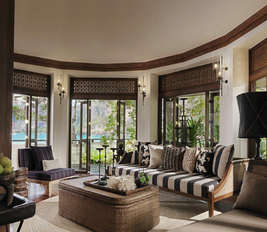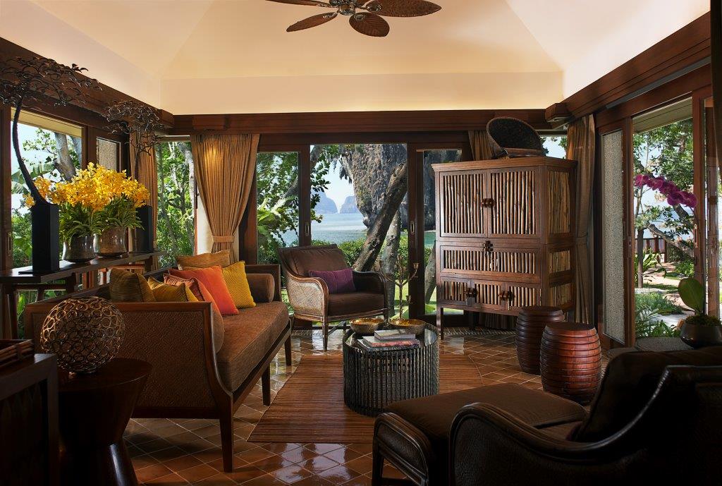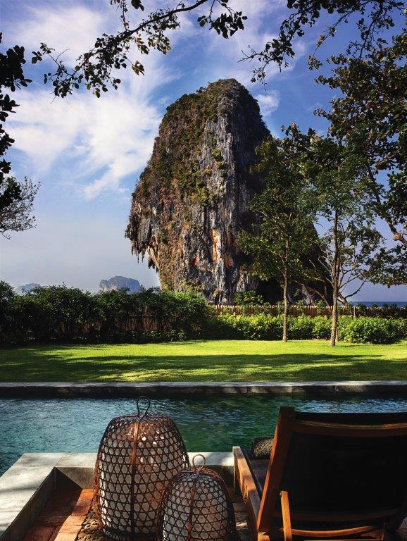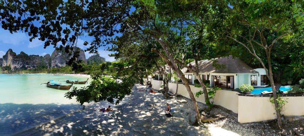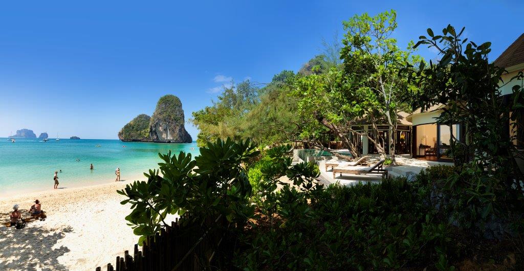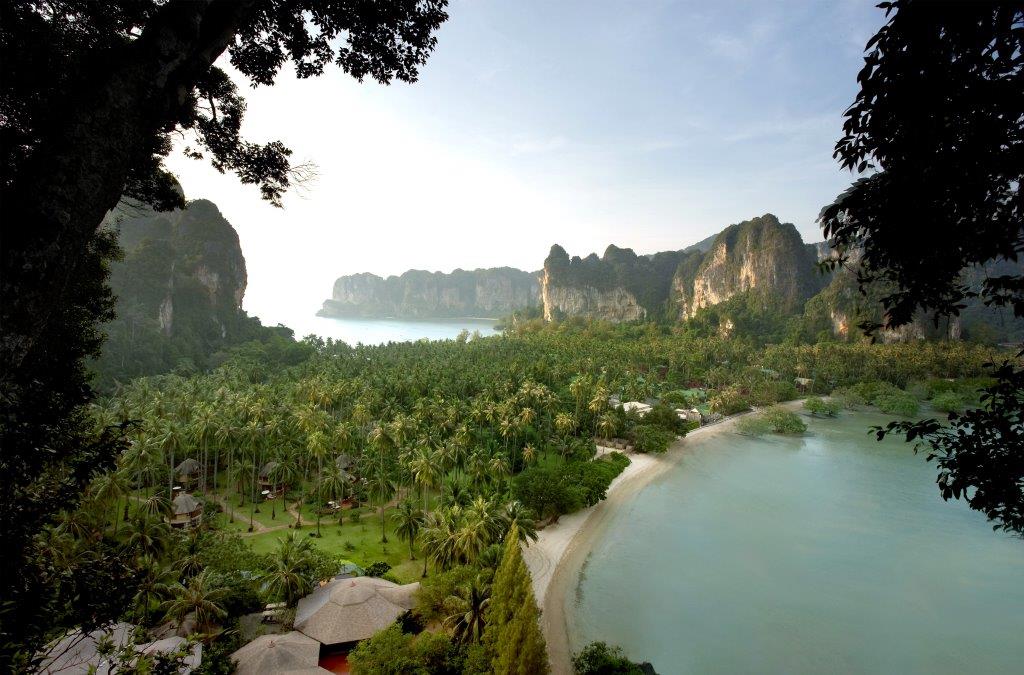 In paradiesischer Lage inmitten tropischer Natur, umgeben von unzähligen Kokosnusspalmen und bewachsenen Felsformationen, liegt dieses wunderbare Juwel am Rande des Marine National Parks auf der abgeschiedenen Phranang Halbinsel. Die preisgekrönte Architektur des Resorts erinnert an ein idyllisches südthailändisches Dorf, weitläufig angelegt in 26 Hektar wildromantischer Natur. 30 Kilometer westlich von Krabi Airport gelegen, ist das Hotel nur per Boot zu erreichen. Die drei Buchten Nam Mao Beach, Railay Beach und Phranang Beach rund um die Anlage bezaubern durch ihre weißen Sandstrände und das kristallklare Wasser. Das Hinterland der Halbinsel lädt zum Wandern und Klettern ein und mit dem Boot kann man von hier aus hervorragend die umliegenden Inselchen erkunden. Die umliegenden Riffe sind bekannt für ihre Artenvielfalt und ihr atemberaubendes klares Wasser, Tauchausflüge und Tauchkurse werden durch das Hotel organisiert. Wandern an Wasserfällen, Elefantenreiten oder Kajak fahren durch Mangrovenwälder – hier verbinden sich Natur und Sport perfekt. Auch im Hotel gibt es ein vielfältiges Sportangebot vom Fitnesscenter über Tennisplätze bis zum Windsurfen, außerdem verschiedene Kurse wie thailändische Kochkurse, Batikdruck oder die Kunst des traditionellen Obstschnitzens. Zur Entspannung bietet das Rayavadee Spa eine Vielzahl von wohltuenden Anwendungen. Exquisite Gourmet-Küche wird in insgesamt vier Restaurants angeboten, von elegant bis leger. Das „Raya Dining“ offeriert mit seinem Grill-Konzept eine nachhaltige und unkomplizierte Küche in einer eleganten und doch entspannten Umgebung. Am schönen Phranang Strand liegt das romantische Thai-Restaurant „Krua Phranang“ mit klimatisiertem Innenbereich und Außensitzplätzen, die einen atemberaubenden Blick auf den Strand, die Kalksteinklippen und umliegenden Inseln ermöglichen. Die „Raitalay Terrace“ liegt ebenfalls am Strand, neben dem großzügigen Infinity Pool des Resorts, und bietet mittags und abends delikate internationale Gerichte in einer stilvollen Umgebung. Das Restaurant „The Grotto“ befindet sich in einer imposanten Tropfsteinhöhle am Strand. In dieser malerischen Kulisse werden Mittag- und Abendessen serviert. Außerdem werden mehrmals pro Woche Fisch- und Meeresfrüchte-Barbecues angeboten. Die 98 komfortablen, freistehenden Pavillons und die 4 luxuriösen Strandvillen aus Naturmaterialien liegen versteckt zwischen den Palmen des tropischen Gartens. Das einzigartige runde Design der Pavillons fügt sich harmonisch in die exotische Umgebung ein. Alle zeichnen sich durch ihr stilvolles Dekor aus poliertem Holz, Stoffen in kräftigen Farben und kunstvolle handgefertigte Details aus. Je nach Kategorie verfügen sie über mehrere Zimmer, oft mit großen Glasfronten, großzügige Außenbereiche und halboffene Wohnzimmer mit Lounge-Charakter, Outdoor-Essbereiche, private Jacuzzi oder einen privaten Süßwasserpool. Viel Platz innen und außen und teilweise auch eigene Pools bieten die Family Paillons. Die Strandvillen sind die Raitalay Villa in einem geschützten eigenen Bereich unmittelbar am Railay Strand, die Rayavadee Villa mit eigenem Swimmingpool mit Jacuzzi mit Ausblick auf den Phranang Strand, sowie die beiden Phranang Villen, die auf natürliche Weise etwas abgeschieden inmitten der dramatischen Landschaft von Kalksteinfelsen liegen und ebenfalls einen malerischen Ausblick auf den Phranang Strand bieten.