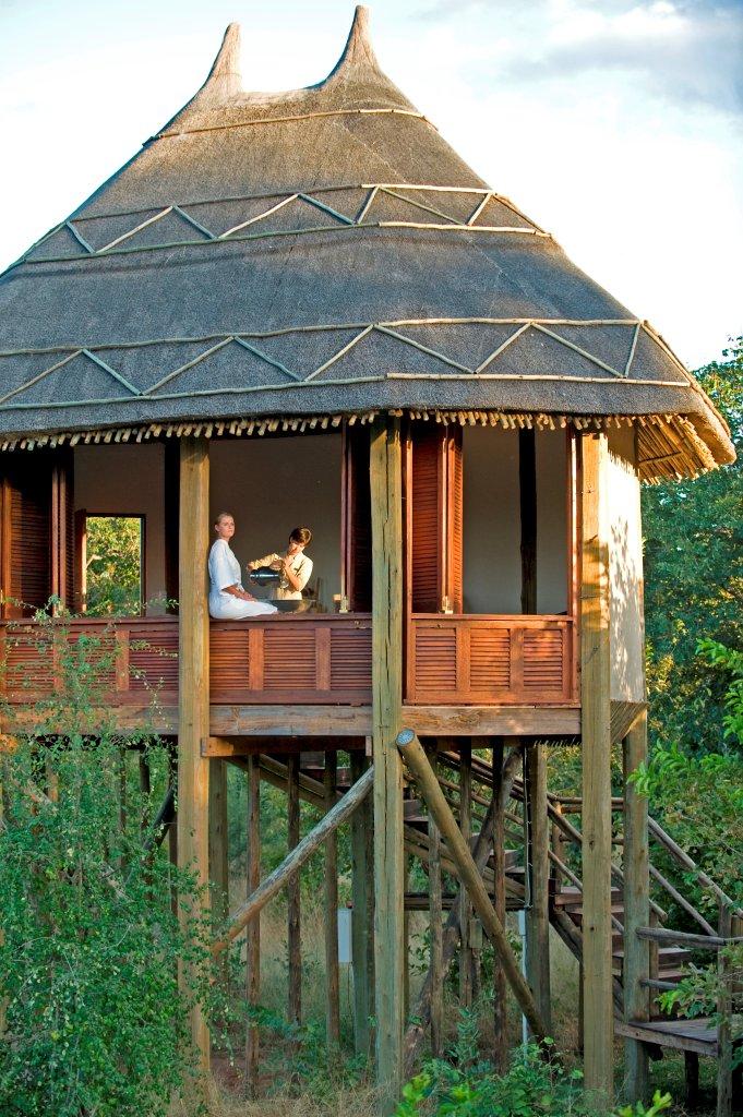 Sanctuary Chobe Chilwero liegt an der Grenze zum Chobe National Park, der besonders für seine weltweit größte verbliebene Elefantenpopulation berühmt ist. Dieses Camp am Flussufer mitten im Busch ist mit fünfzehn luxuriösen Cottages klein, bietet aber den Komfort und die Annehmlichkeiten eines großen Resorts. Eine Besonderheit für ein Camp dieser Größe ist beispielweise der wunderschöne Spa, der eine breite Palette von Anwendungen bietet und mit seinen Dekoren und offen gestalteten Räumen und Pavillons perfekt mit der Umgebung harmoniert. Die verschiedenen Behandlungsräume - einer davon ein Baumhaus – werden ergänzt durch einen Whirlpool, ein Tauchbecken, Vichy-Duschen, Hydrotherapie und einen Ruhebereich, alles in Anlehnung an die umgebende Natur gestaltet und eingerichtet. Auch der Swimmingpool mit verschiedenen Ebenen fügt sich stimmig in die Landschaft ein, das Hauptdeck bietet großartige Blicke über den Chobe-Fluss und die Teakwälder, die charakteristisch für diese Gegend sind. Die Cottages sind sehr schön eingerichtet, verfügen über eine Innen- und eine Außendusche, eine frei stehende Badewanne mit Ausblick und jeweils einen eigenen Garten, in dem man auf Wunsch abends ganz privat unterm Sternenhimmel speisen kann.