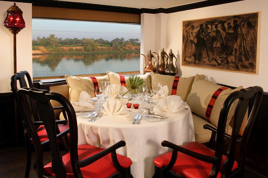 Eine kleine intime Motoryacht, die wie geschaffen ist für eine entspannte einwöchige Kreuzfahrt auf dem Nil. Mit insgesamt 14 Kabinen und Suiten bietet das Schiff maximal 36 Gästen ein luxuriöses Zuhause auf Zeit. Die Ausstattung der Räumlichkeiten, vornehmlich in Creme und Weiß gehalten, unterstreicht den eleganten Charakter der Sun Boat III. Hier wird man zurück versetzt in die Zeit, als die Reichen und Berühmten sich nach Ägypten begaben, um Abenteuerurlaub zu verbringen, ohne auf feinste Weine und erlesene Zigarren zu verzichten. Auch die Einrichtung erinnert an den Stil der 20-er und 30-er Jahre, sodass rundum eine gelungene Zeitreise garantiert ist.